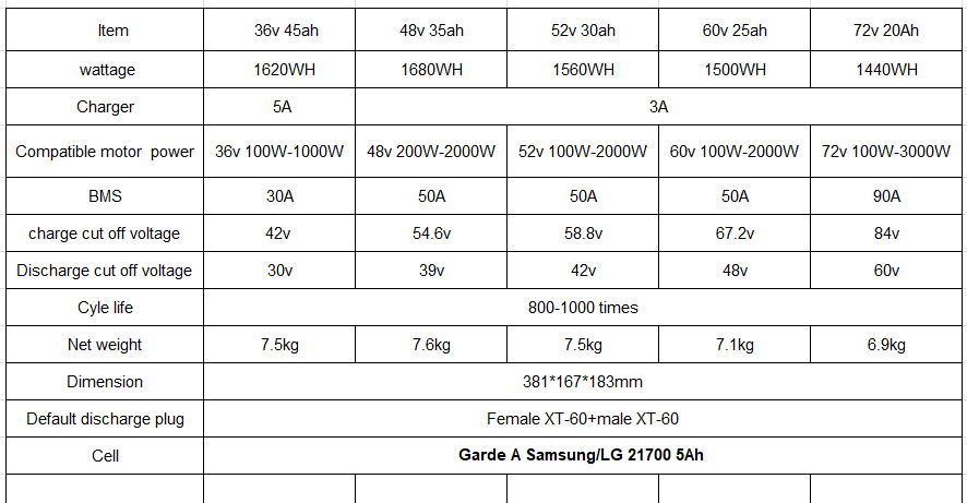 48V: Up to 35Ah for an incredible range of over 1600Wh (48V×35Ah=1680Wh).